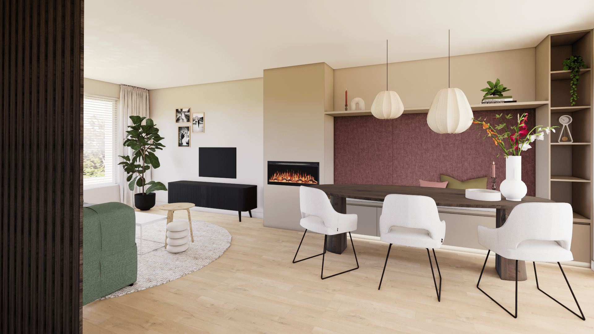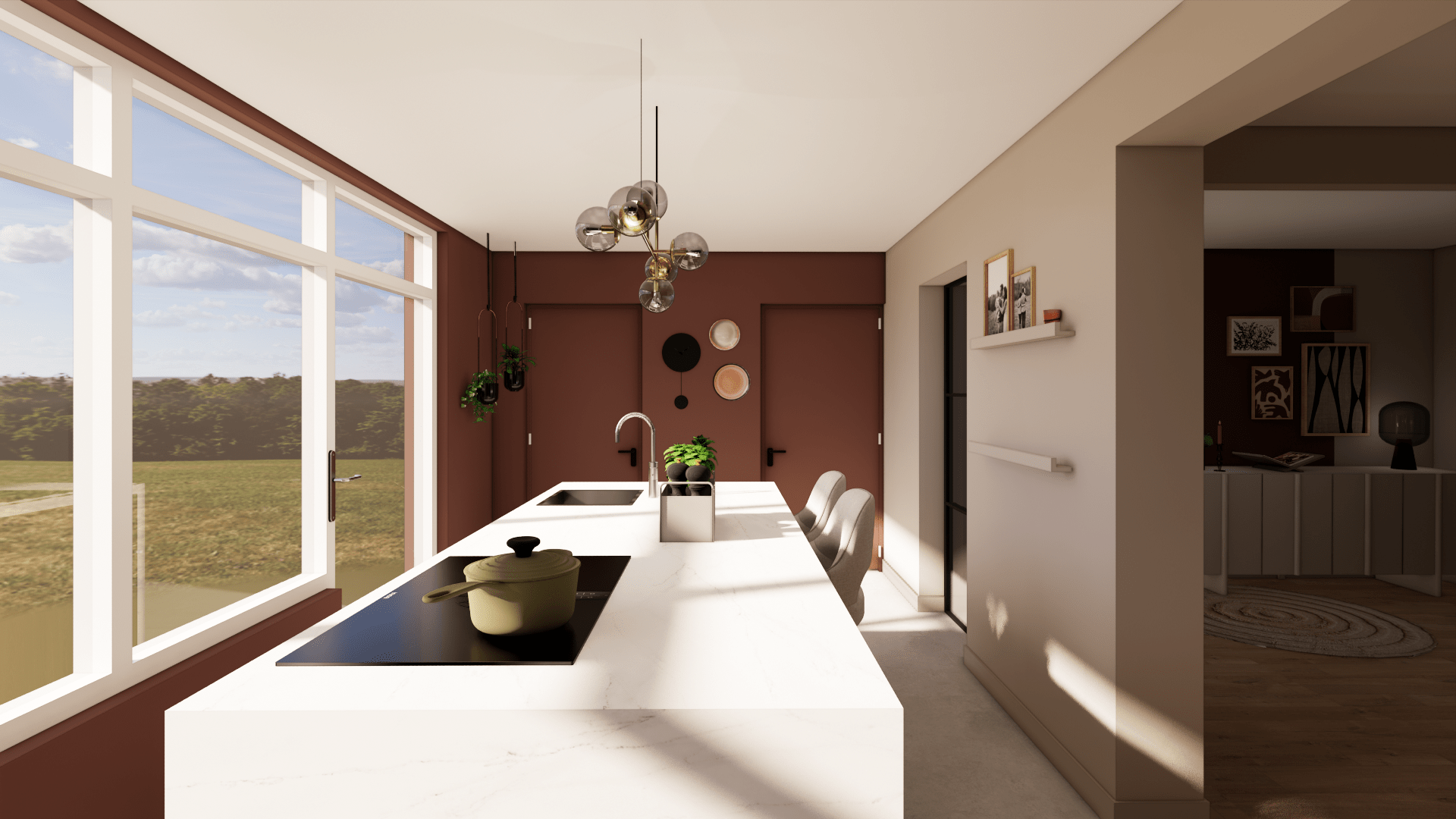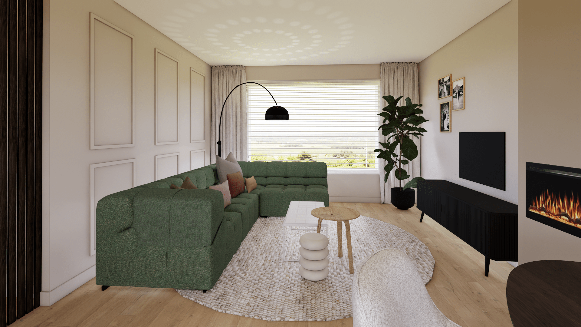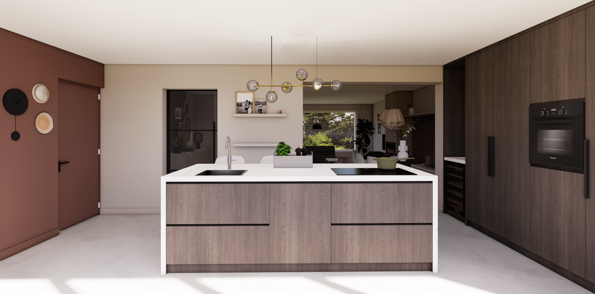 Een leuk stel uit Kelpen-Oler heeft mij gevraagd om een mooi interieurplan te maken voor hun nieuwe woning. Ze hadden samen een huis gekocht en waren net begonnen met de verbouwing. Precies op het goede moment hebben ze mij gevraagd of ik een 3D ontwerp wilde maken voor de hele benedenverdieping. Hier was het belangrijk dat het naast een strakke uitstraling, ook een gezellige sfeer heeft waar kleur terug komt.