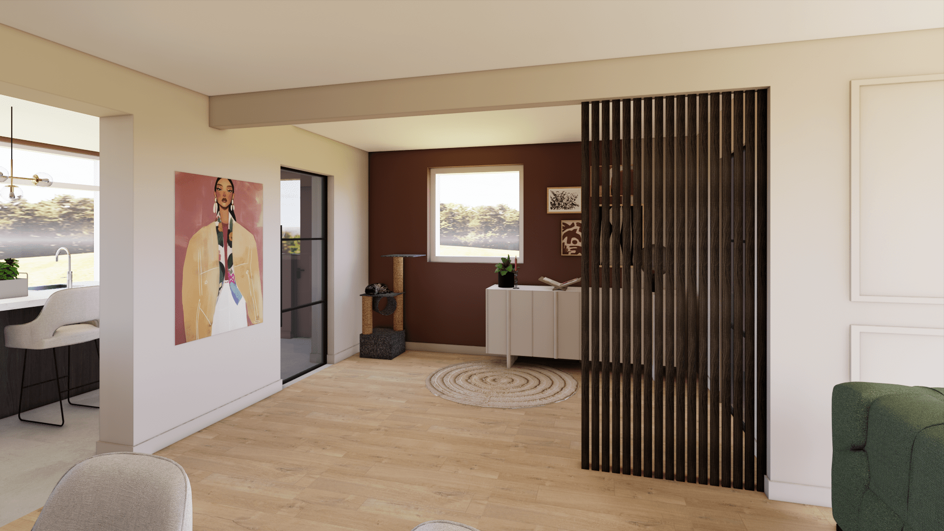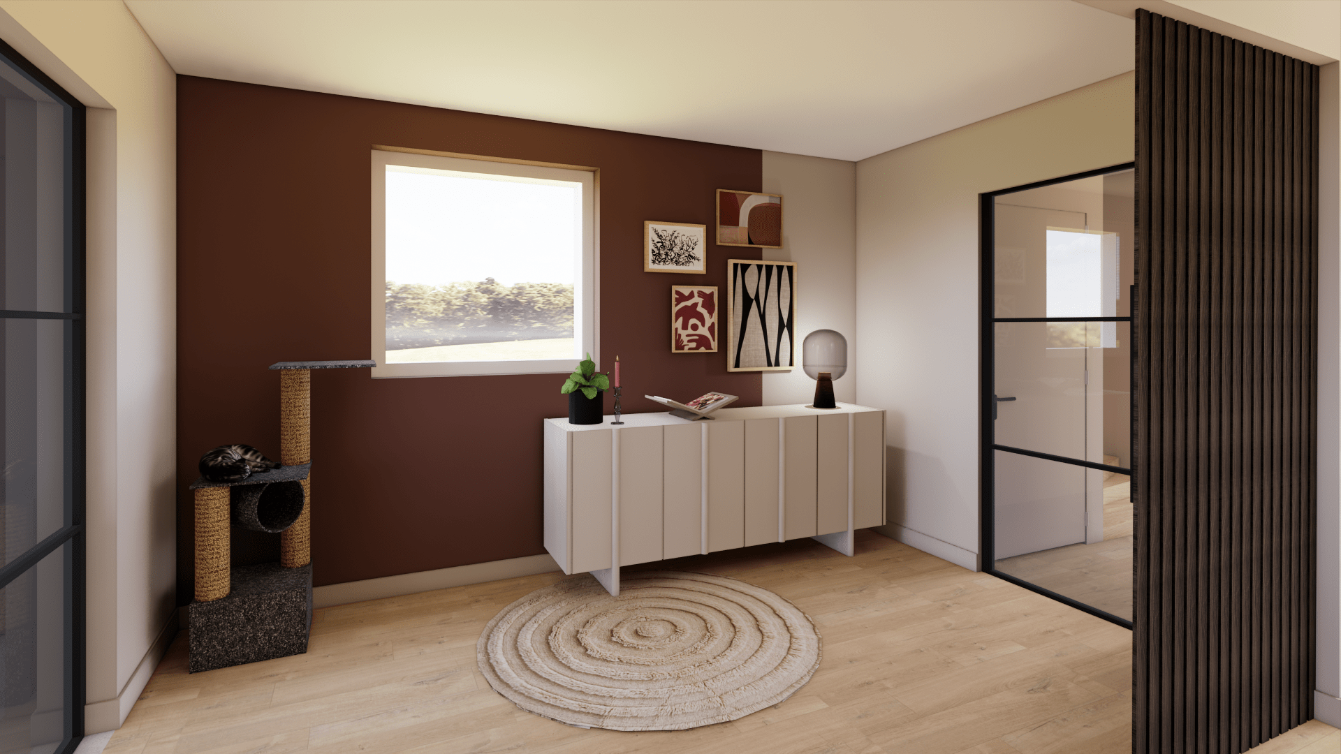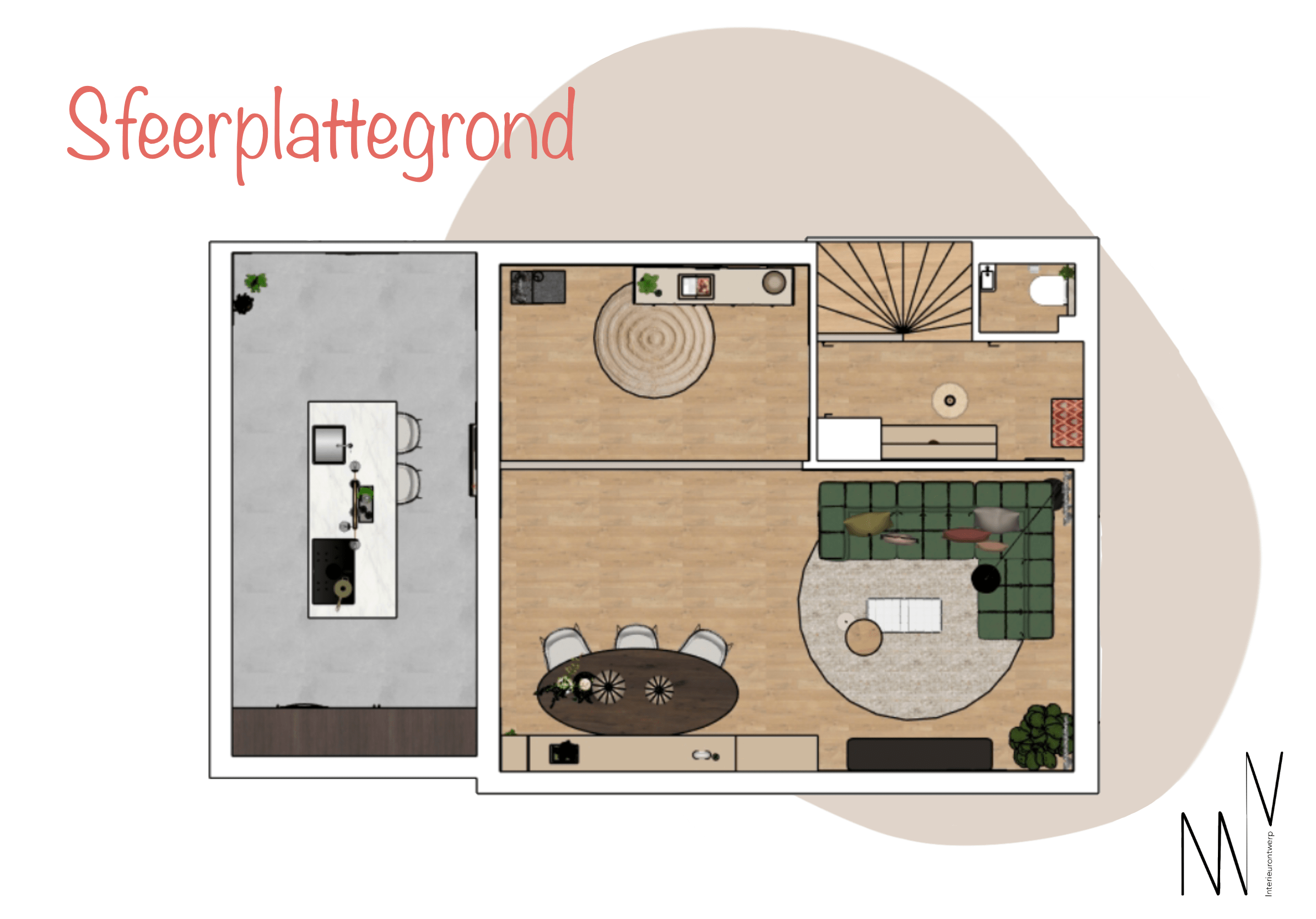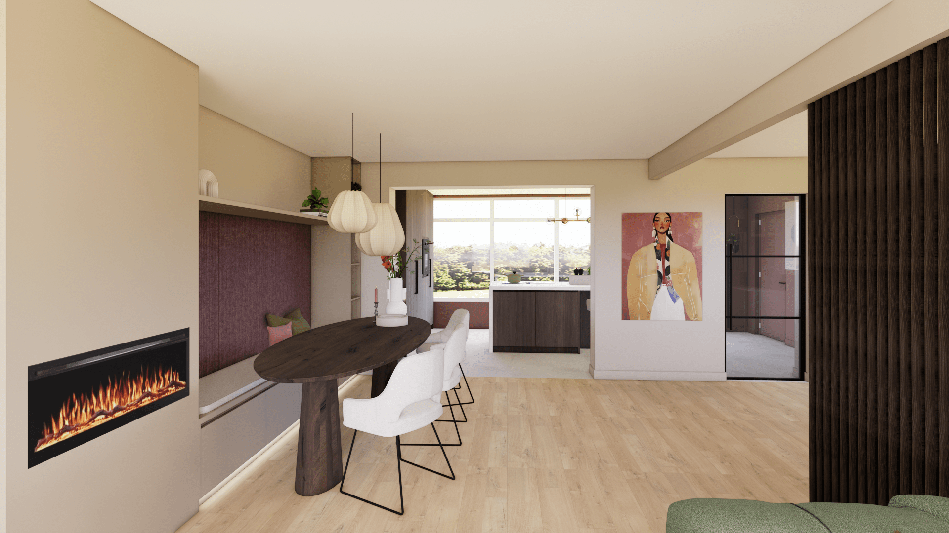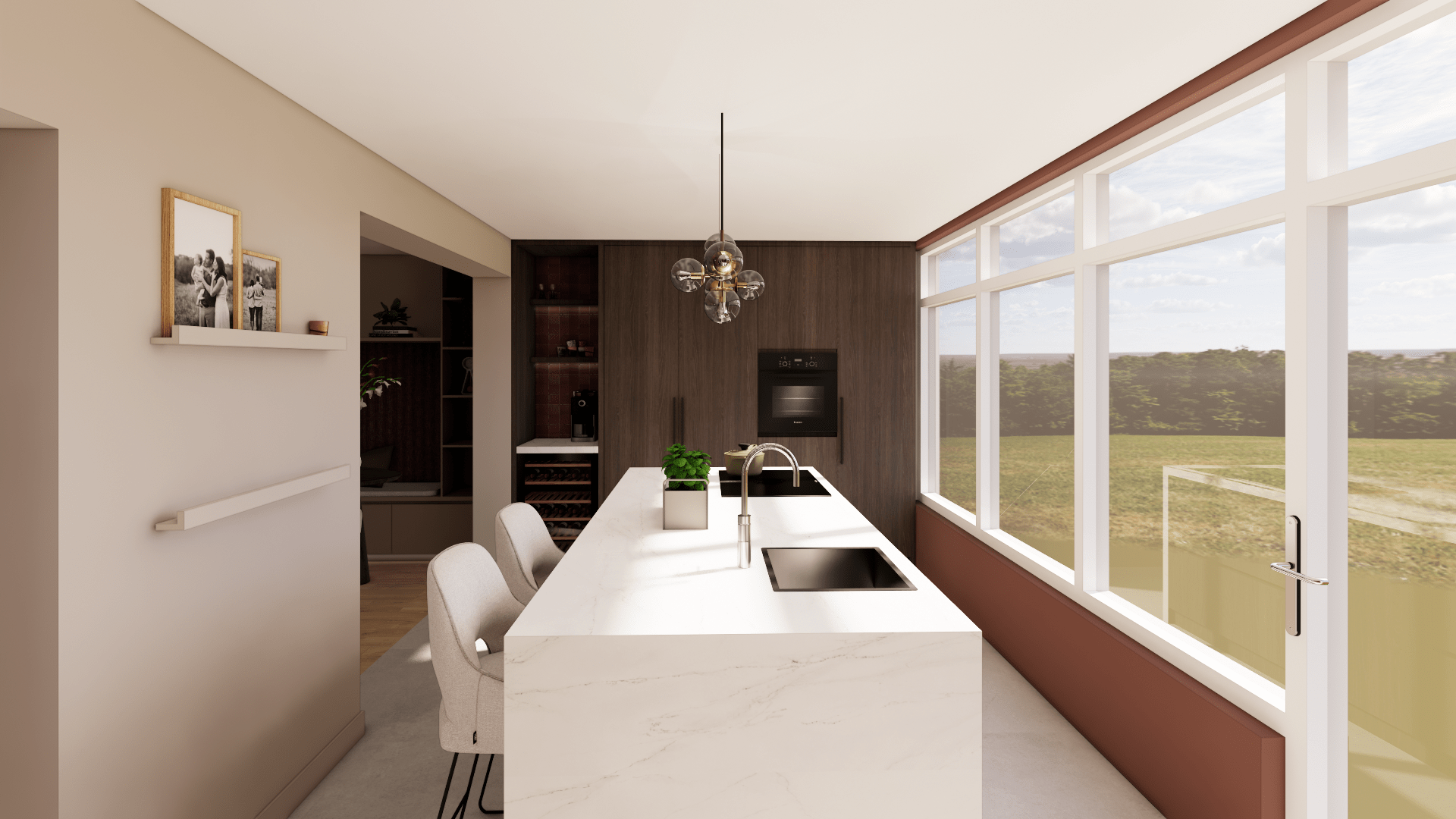 Een leuk stel uit Kelpen-Oler heeft mij gevraagd om een mooi interieurplan te maken voor hun nieuwe woning. Ze hadden samen een huis gekocht en waren net begonnen met de verbouwing. Precies op het goede moment hebben ze mij gevraagd of ik een 3D ontwerp wilde maken voor de hele benedenverdieping. Hier was het belangrijk dat het naast een strakke uitstraling, ook een gezellige sfeer heeft waar kleur terug komt.