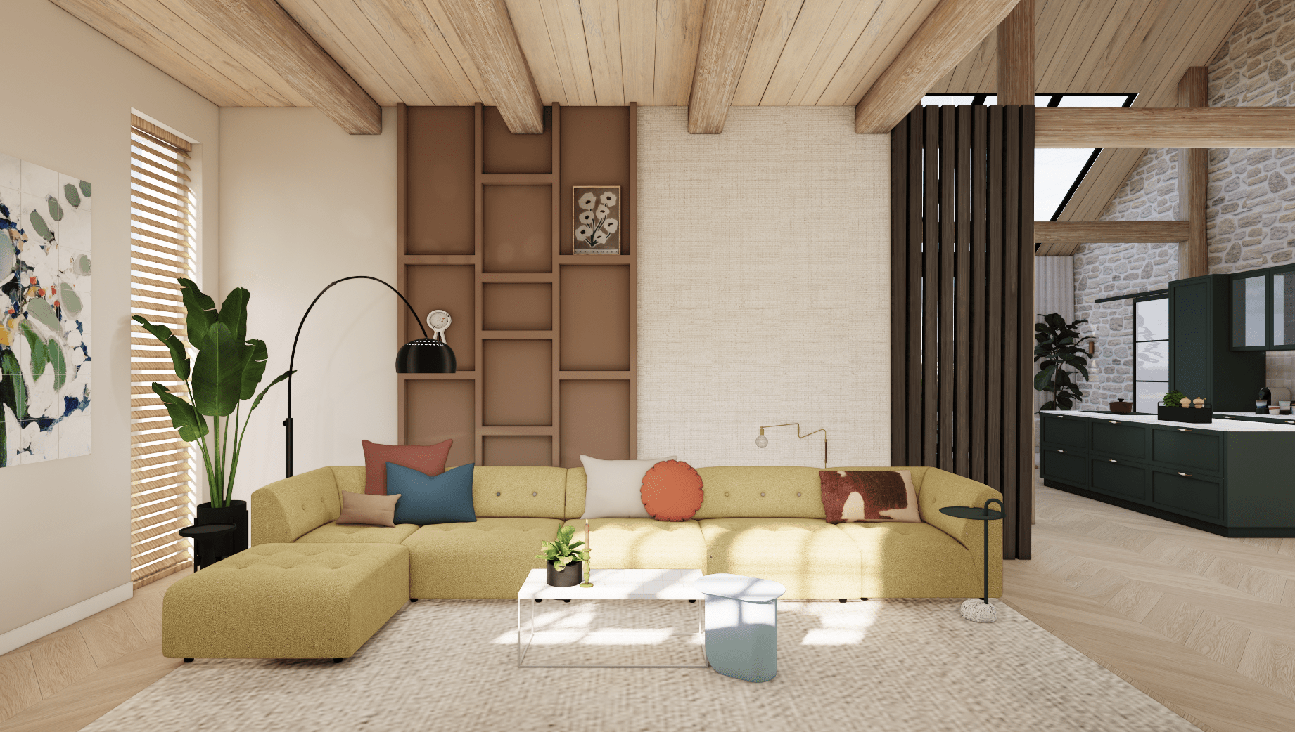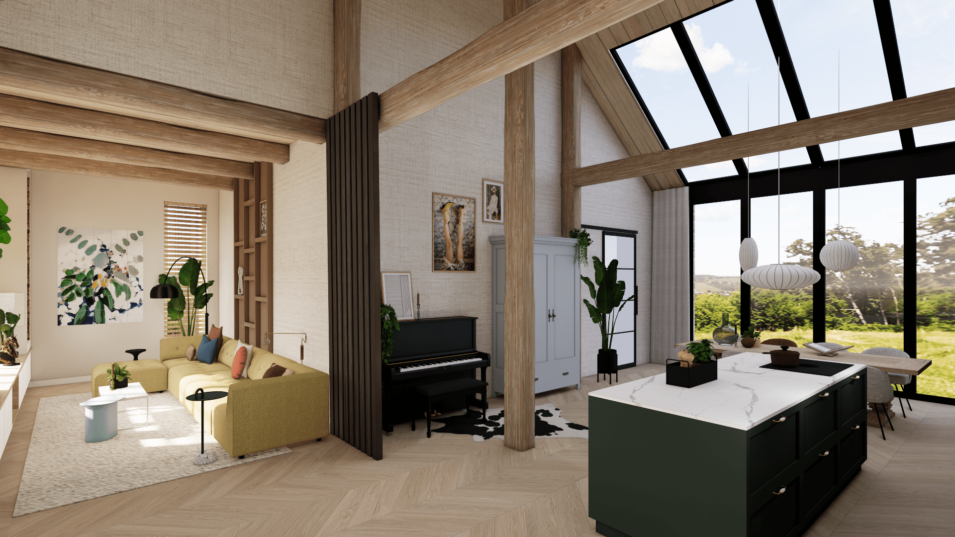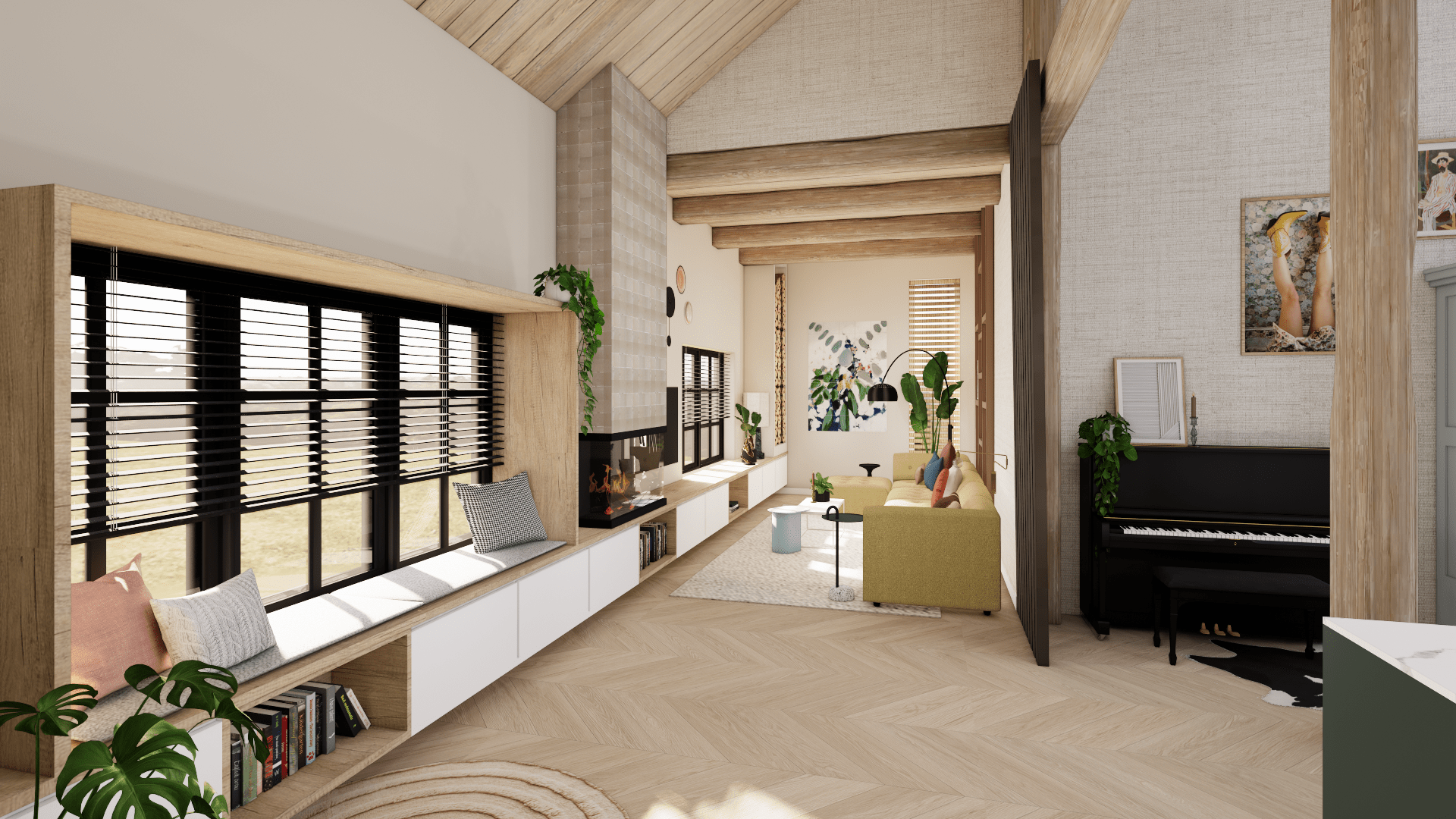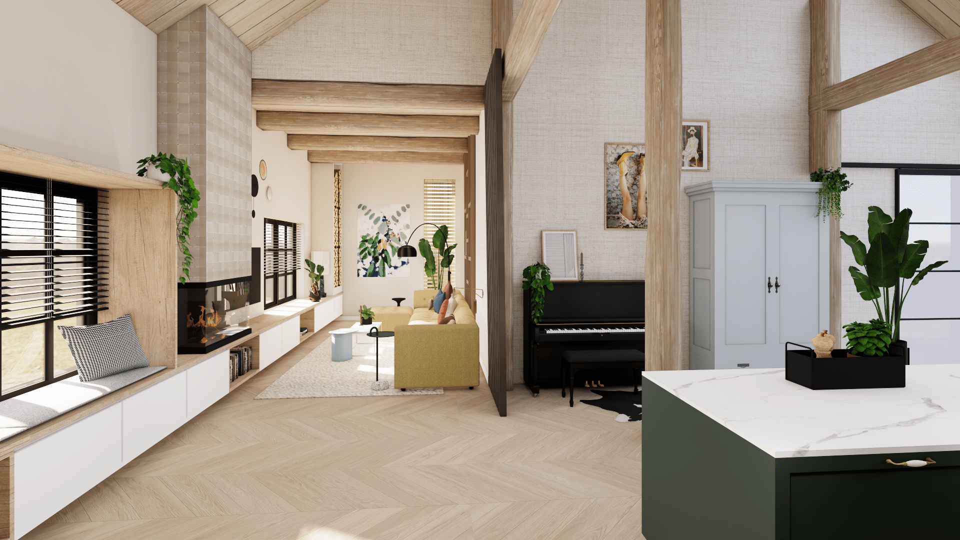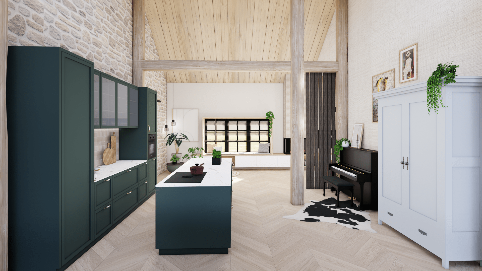 Voor deze woonboerderij heb ik een compleet interieurontwerp gemaakt voor de benedenverdieping, inclusief keuken en woonkamer.
